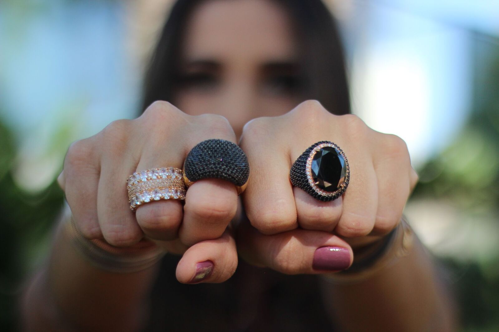 Anéis de três, dois ou quatro dedos é uma tendencia que não precisa ir em bora tão cedo. São lindos e podem ser de vários desenhos, da uma olhada nesse aqui:
